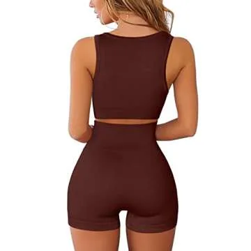 QINSEN FAFOFA High Waisted Booty Shorts for Women Ribbed Crop Tank Tops Seamless 2 Piece Outfits Coffee S