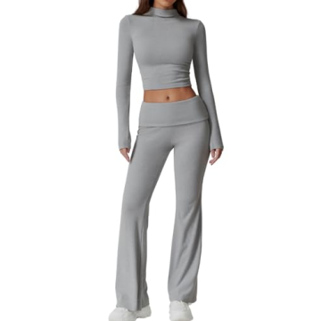 Show moreCrafted with soft, elastic, and premium material, the QINSEN two-piece lounge set is designed to flatter your curves while ensuring all-day comfort. The mock neck top with side ruching is perfect for relaxing at home or pairing with jeans for a casual outing. Its slimming fit and cropped length accentuate your curves, offering both style and comfort. The fold-over flare pants are versatile, stretchy, and contouring, suitable for low or mid-rise wear. Ideal for daily wear, street fashion, parties, clubs, and travel, this set combines simplicity with trendiness. Care instructions include gentle cold hand wash in mild detergent, avoiding bleach, dry cleaning, ironing, and tumble drying.