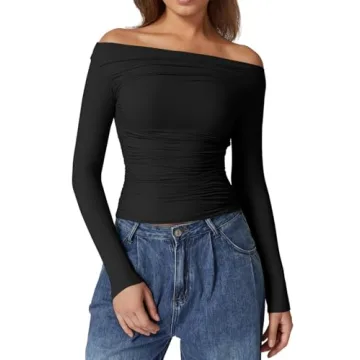 Show moreDiscover the enchanting allure of the QINSEN Women's Long Sleeve Top, where elegance meets modern fashion. This exquisite piece, designed with a captivating off-shoulder style, instantly accentuates your neckline and shoulders, making it a must-have for any special occasion – be it a romantic dinner, a night out with friends, or a sophisticated gathering. Crafted from rich, double-lined fabric, this top embraces your figure with a luxurious, smooth fit that exudes confidence and class. The stunning ruched detail not only adds a touch of texture but also serves to elegantly shape your silhouette, ensuring you radiate beauty wherever you go.