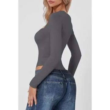 QINSEN Tummy Ontrol Bodysuit for Women Square Neck High Cut T Shirt Long Sleeve Tops Dark Grey XS