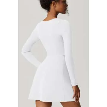 QINSEN White Dress for Womens Long Sleeve Square Neck Bodycon Mini Dress for Casual S