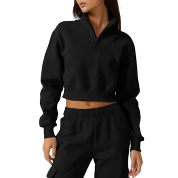 Show moreIntroducing the QINSEN Woman's High Neck Half Zip Crop Sweatshirt, a beautifully crafted athleisure piece that effortlessly combines functionality and style. This trendy cropped sweatshirt features a high neck stand collar, half zip closure, and long sleeves, perfect for layering during the cooler months. Made from a soft, high-quality material that is fleece-lined on the inside, it ensures warmth and comfort no matter the occasion. With a length of about 20" from neck to hem in size small and a 2" neck length, this pullover is notably lightweight, making it an ideal companion for chilly fall, winter, and early spring outings.