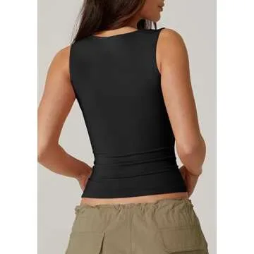 QINSEN Woman's Sweetheart Neck T Shirts Sleeveless Tank Top High Stretch Bodycon Tee Black XS