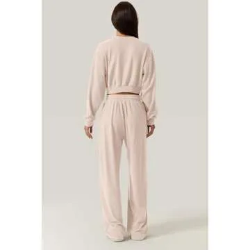 QINSEN Women 2 Piece Outfits Sweatsuit Set Twist Front Cropped Sweatshirt Wide Leg Sweatpant Lounge Set Tracksuit