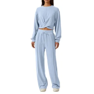 Show more Step into unparalleled comfort with the QINSEN Women 2 Piece Outfits Sweatsuit Set! Expertly designed for those who refuse to sacrifice style for comfort, this chic ensemble combines a twist front cropped sweatshirt and wide-leg sweatpants to offer a flattering silhouette perfect for any occasion. Crafted from super soft brushed fabric, it's the luxurious touch your wardrobe has been craving. The unique criss-cross detail on the top enhances your look, making it suitable for both lounging at home and stepping out for a quick errand.