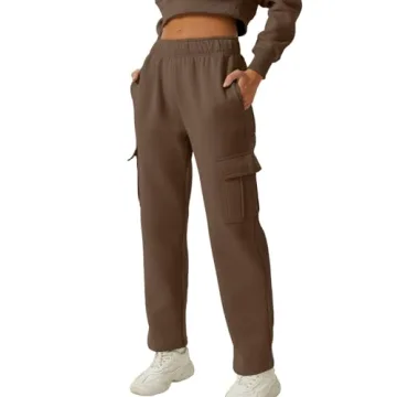 QINSEN Women's Cozy Fleece Sweatpants with 6 Pockets - Brown M
