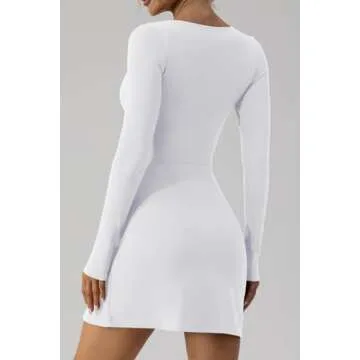 QINSEN Women's Long Sleeve Sweetheart Neckline Mini Dress High Waist Party Club Outfit White (May See Through) S
