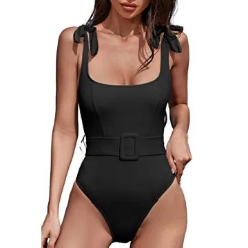 Show moreIntroducing the QINSEN Women's One Piece Swimsuit, the ultimate blend of style, comfort, and functionality designed to make you feel confident throughout the summer. Crafted from luxurious, soft fabric, this exquisite black bathing suit features adjustable tie straps that allow you to customize the fit according to your body shape. The addition of a slimming elastic belt at the waist accentuates your curves, ensuring you look chic whether lounging poolside or frolicking on the beach. With a sexy U-neck cut and high-rise design, this suit offers flattering coverage and hugs your body in all the right places, becoming an essential part of your warm-weather wardrobe.