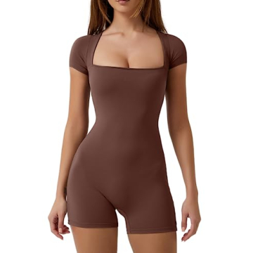 Show more Introducing the QINSEN Women's Sexy Square Neck Unitard Bodysuit, a versatile and stylish addition to your summer wardrobe. This bodysuit features a chic square neckline and short sleeves, offering a perfect blend of comfort and sophistication. Crafted from ultra-flattering, high-stretch fabric that wicks away sweat while providing a soft, cotton-like feel, this unitard is designed to keep you looking and feeling fabulous all day long. Whether you're heading to a summer party, a casual outing, or hitting the gym, this romper ensures you stay cool and chic.