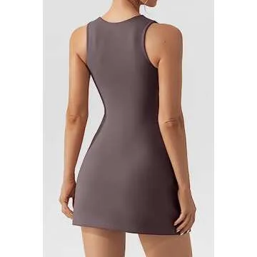 QINSEN Women's Sleeveless Dress Stretch Camisole Tank Top Flared Short Mini Dress for Summer M Desert Taupe