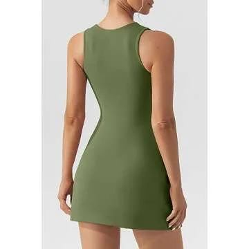 QINSEN Womens Sexy Square Neck Mini Dress High Waist Breathable Casual Dress Olive S