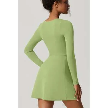 QINSEN Womens Square Neck Long Sleeve Side Slit Mini Dress for Party Club Night Out Green S