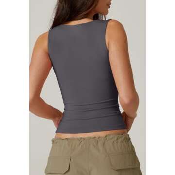 QINSEN Womens Sweetheart Neck Sleeveless Top for Summer Going Out Tee Shirts Dark Grey S