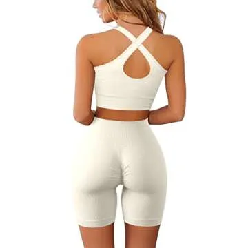 Show moreIntroducing the QINSEN Women's Yoga Shorts 2 Piece Outfits – a perfect blend of style, comfort, and functionality designed for the modern woman who values quality in her activewear. This chic ensemble includes a halter cutout crop top and seamless high waist shorts, designed in a stunning beige color that effortlessly transitions from workout sessions to casual outings. Crafted with breathable and stretchy fabric, this outfit ensures freedom of movement during yoga, running, or any fitness routine. The high waist design not only flatters your figure but also provides essential support for high-impact activities, making it an essential addition to your wardrobe.