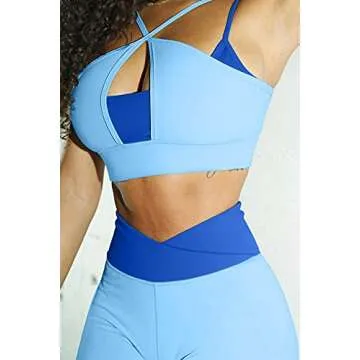 The cross front double straps bra features a trendy color block design along with removable padded cups and spaghetti straps that elegantly cross at the back for a fashionable touch. The thick underband not only enhances your comfort but also ensures a secure fit for any kind of workout.