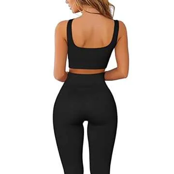 The standout feature of this outfit is the sexy square neckline crop tank top. Its design includes wide-set straps and a thick ribbed underband that provides excellent support during any workout. With removable padded cups, you can adjust the level of comfort and coverage to suit your preference. The seamless knit ribbed fabric ensures you stay stylish and confident, whether you're in motion or at rest.