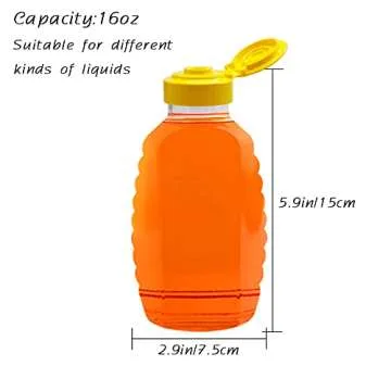 Qinsihwn 8 Pack 16oz Clear Plastic Honey Bottles,Refillable Food Grade Honey Container,Squeeze Honey Bottle With Leak Proof Flip-Top Caps for Storing and Dispensing