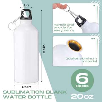 Qinyoung 6 Set 20 oz Sublimation Water Bottle Drawstring Bags and Sublimation Towels Aluminum Sport Water Bottle with Sweat Towel and Storage Bag DIY for Travel Hiking Gym Fishing (Classic Style)