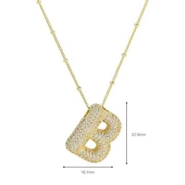 Qitian Shiny Cubic Zirconia Bubble Alphabet 26 A-Z,Puffy Name,Letter Necklace,Personalized Monogram Necklace,Balloon Initial Necklace Gifts for Women 18K Gold Plated Jewelry. (Letter Necklace-B)