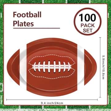 QIYANPAX 100 Pieces Football Plates Football Shaped Disposable Paper Plates Football Party Supplies for Football Party Decorations Gameday Tailgate Party Decorations