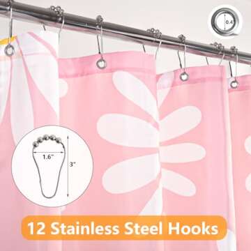 QJHOMO Pink Floral Shower Curtain Set - Cute Daisy Design, Waterproof, Washable with Hooks, 72x72 inch