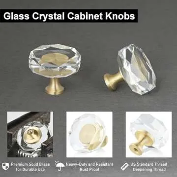 Show more Introducing the Modern Clear Decorative Cabinet Knob, an exquisite addition that redefines elegance in home decor. Crafted from high-quality crystal glass and brass with a brushed finish, this knob isn’t just a functional piece, but a statement that complements any cabinetry beautifully. Weighing in at a sturdy 1.1 ounces, it boasts a well-balanced feel that speaks to its durability and style.