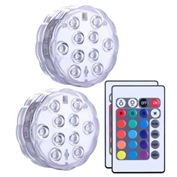 Qoolife Submersible LED Lights - 2-Pack Remote Control & Waterproof Lighting