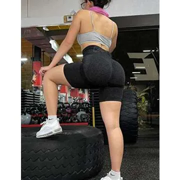 QOQ Women Scrunch Butt Workout Shorts Seamless High Waist Ruched Booty Yoga Biker Shorts Black L