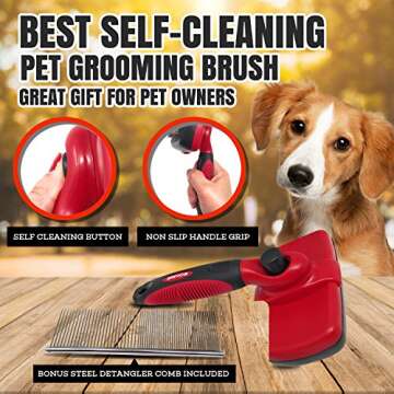 Introducing the QOUKETT Best Shedding Brush and Pet Grooming Tools—the ultimate grooming solution for your beloved pets! Designed for both cats and dogs, this self-cleaning slicker brush ensures a delightful grooming experience that is quick and efficient. Gone are the days of wrestling with tangled fur! Our team has expertly crafted this grooming tool to meet all your furry friend's grooming needs, making it a must-have for every pet owner.