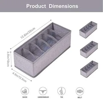 Qozary 3 Pack Sock Underwear Drawer Organizer Dividers, Collapsible Cabinet Closet Storage Boxes for Clothes, Socks, Lingerie, Underwear, Tie, Belt, Baby, Bedroom