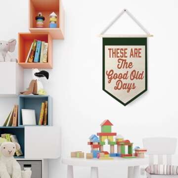 Show moreElevate your home decor with the Qpenm These Are The Good Old Days Hanging Wall Canvas Banner, a versatile and stylish addition to any space. Crafted with premium materials, this canvas pennant effortlessly transforms nurseries, bedrooms, or any event space into a realm of charm and personality. The nostalgic inspirational quote is a daily reminder to cherish the present, while the trendy patterns and colors bring a fashionable flair that complements various styles. Whether it's a celebration or simply a decor change, this banner is designed to enhance your space beautifully.