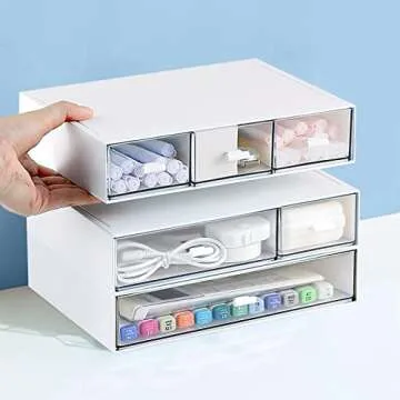 QPEY Desk Organizer with 6 Drawers, Desk Storage Box Office Drawer Organizer Desk Organization and Storage Pen Storage Plastic Makeup Storage Suitable for Office, School, Home