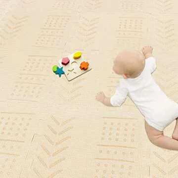 qqpp EVA 18 Tiles Baby Play Mat for Playing, Interlocking Foam Floor Mats for Tummy Time & Crawling, Puzzle Flooring Tiles with Laser Pattern for Kids. Beige. QL-91(J) b18N