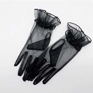 QRBTSCL Women's Short Mesh Gloves Ruffled Tulle Wedding Party Gloves Short Prom Evening Gloves Black