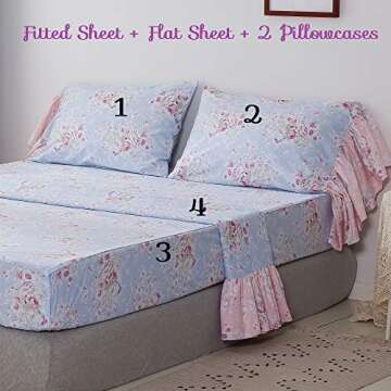 Show more Transform your sleep experience with the QSH 100% Cotton Sheets Queen Size Bed. Crafted from premium quality cotton, these sheets offer luxurious comfort, embracing you in a soft and gentle hug as you drift into a peaceful slumber. The stunning floral prints not only bring a splash of elegance and style to any bedroom decor but also enhance the overall aesthetics of your space. With deep pockets designed to ensure a secure fit on your mattress, you can rest easy knowing your sheets will stay in place throughout the night. The breathable fabric allows for optimal temperature control, making these sheets perfect for year-round use.