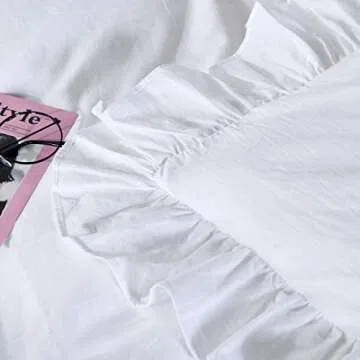 QSH Washed Cotton Ruffled King Duvet Cover Set,Vintage White Shabby Boho Chic Ruffle Farmhouse Bedding Comforter Quilt Cover 3 Pieces Aesthetic French Country Cottage King Bedding