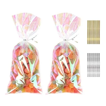 One of the remarkable features of our treat bags is their thickness, rated at 4 mm per single side, offering exceptional durability and vapor-blocking properties that keep your treats fresh and flavors intact. Included with the bags are 100 iridescent twist ties, allowing you to seal your gifts beautifully and effortlessly. This stylish accessory not only secures your treats but also adds an element of fun to your presentations. Whether you're packaging candies, cookies, or mini cakes, these bags ensure that every detail of your gift is as enchanting as the contents inside.