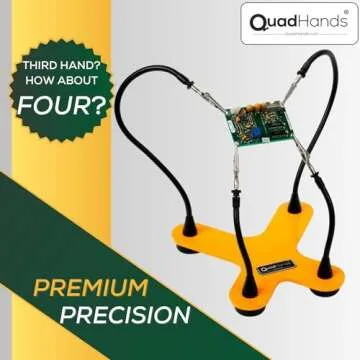 QuadHands Classic Workbench Soldering Helping Third Hand Tool | 4 Gooseneck Flexible Positionable Arms | Sturdy Base | Rotating Stainless Steel Alligator Locking Clamps | Circuit Board Holder | USA