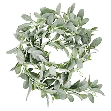 Quadow Artificial Lamb's Ear Greenery Garland, 6 Ft Long Artificial Lambs Ear Garlands Room Decor Green Leaves Vines Garland Home Party Garden Decor