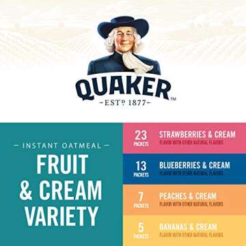 Quaker Instant Oatmeal, Fruit and Cream 4 Flavor Variety Pack, Individual Packets, 48 Count