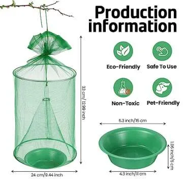 Show moreExperience ultimate fly control with the Qualirey 18 Pcs Ranch Fly Trap, expertly designed for outdoor use. Each trap measures an impressive 9.44 x 12.99 inches, made from thick iron wire gauze and sturdy plastic bowls. Never worry about pesky flies again! This set includes 18 reusable traps, ensuring you have enough to tackle multiple areas of your farm, yard, or restaurant. The combination of robust materials guarantees long-lasting performance while maintaining an eco-friendly profile.