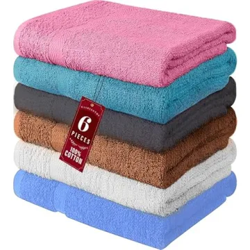QUBA LINEN Cotton Bath Towels - 6 Pack Ultra Absorbent Shower Towels for Pool, Spa & Gym