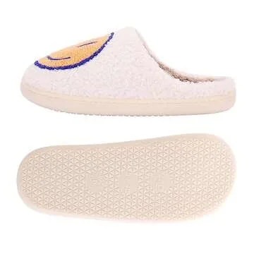 Qubuwalk Retro Smile Face Soft Plush Comfy Warm Fuzzy Women's Cozy House Slippers