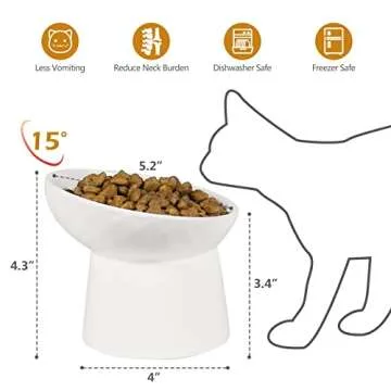 Qucey Ceramic Cat Food and Water Bowl Set, Raised Tilted Cat Feeder Dishes with Stand, Elevated Pet Food Bowl for Cats and Small Dogs, Anti Vomiting & Reduce Neck Burden