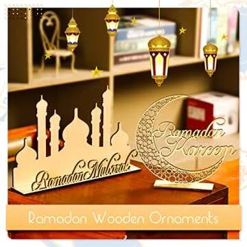 The versatility of these ornaments is unmatched, making them suitable for various occasions beyond just Eid al-Fitr. These wooden pieces serve as thoughtful gifts for friends and neighbors, conveying your festival wishes in a heartfelt manner. Easy to use with removable wooden stands for stability, these decorations promise durability, allowing you to cherish them through many celebrations.