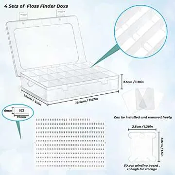 Show more Introducing the Queekay Embroidery Floss Organizer Box Set—your ultimate storage solution for all embroidery enthusiasts! This comprehensive set includes four meticulously designed organizer boxes featuring 24 adjustable compartments each, enabling you to customize storage according to your unique needs. To complement the boxes, we include 200 plastic floss bobbins and 4 sheets of number stickers—with a whopping 1790 small number stickers in total! With this set, organization has never been easier, allowing you to unlock your creativity while keeping all your supplies well-organized and easy to access.