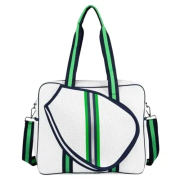 Show more If you're a passionate pickleball player, the perfect companion for your sporting adventures is now here. Our ladies pickleball bag is crafted specifically for the serious pickleball woman, ensuring not only functionality but also style. Designed by an established boutique pickleball brand, this bag elevates your accessory game, combining a beautiful aesthetic with practical use. Its unique striped shoulder strap allows versatility, so you can wear it comfortably as a crossbody bag or a shoulder bag, accommodating your dynamic lifestyle.
