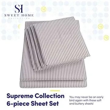Queen Sheets Stripe Grey - 6 Piece 1500 Supreme Collection Fine Brushed Microfiber Deep Pocket Queen Sheet Set Bedding - 2 Extra Pillow Cases, Great Value, Queen, Classic Stripe Gray