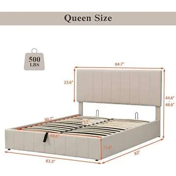 Queen Upholstered Platform Bed with Gas Lift up Storage, Queen Bed Frame with Storage Underneath and Tufted Headboard, Wooden Platform Bed with Hydraulic Storage System (Queen Bed, Beige )
