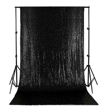 QueenDream Black Sequin Backdrop 4FT x 6.5FT - Sparkle Up Your Events!